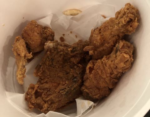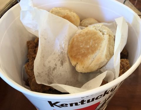 在纽约吃肯德基。不同于中国肯德基的是这里有小酥饼,这里的土豆泥和蔬菜沙拉都很大碗,一份抵国内的三份吧。这里没有香辣鸡翅,只有原味的,分炸的酥脆一点的和不太酥脆的两种。和中国一样的是买套餐比较划算,一大桶鸡一共八块加四个饼加两个土豆泥和一个沙拉20美元,而如果土豆泥单买的话一个就得4元。