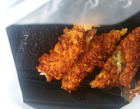 The service in the drive thru from 1 to 10 is 3. The food presentation is a 0. Here is the hot chicken advertised this spring and it looked terrible. The hot sauce didn't stick onto the chicken.