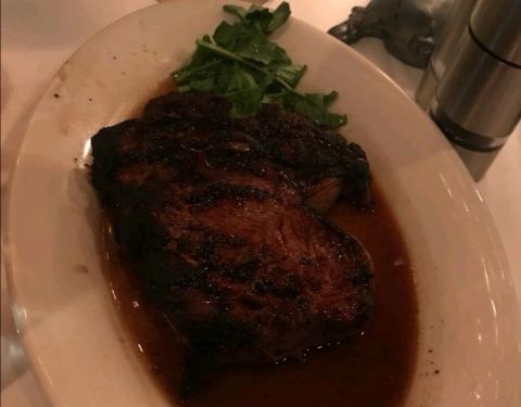我有强烈的眼。其他方面很好……薯条,蔬菜,葡萄酒等。我喜欢我的牛排,但这很令人失望