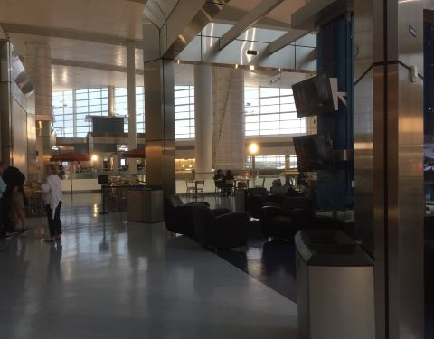 餐厅位于 D27 闸口的对面,在麦当劳旁边有梯级上一层。看上去格局高一点,除了一般的三文治和沙拉等食物,还可以吃牛排,价格不算便宜。