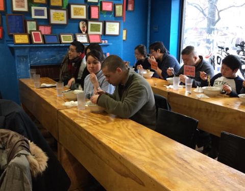 这是一家在剑桥地区非常知名的拉面店,店的面积非常小,只有10来个座位,因此饭点的时候肯定是要排队的
