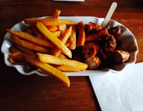 Currywurst nach Elsässer Art mit Sweet Potato's ist der Hammer