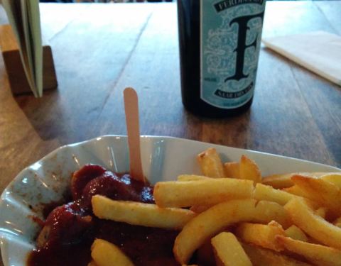 Tolle Currywurst und Pulled Pork Sandwich - zu beachten ist auch die grandiose Gin Auswahl! Zu besonderen Anlässen gibt es auch mal Pastrami, ab damit auf die Karte!