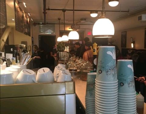 - 里面的咖啡因地方很不错,桌椅都是复古的,我很喜欢,每天早上排队的人很多,我喜欢拿铁咖啡,味道特别不错