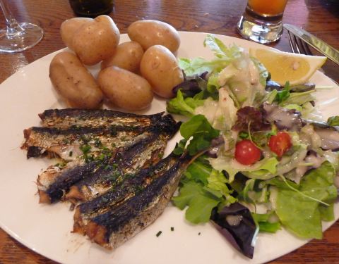 Buenas sardinas asadas, variedad de platos y crêpes. Menú decente a mediodía por 16 euros. Mejillones con patatas fritas. Muuucha variedad de cervezas bretonas. Lugar muy turístico, sirven hasta tarde