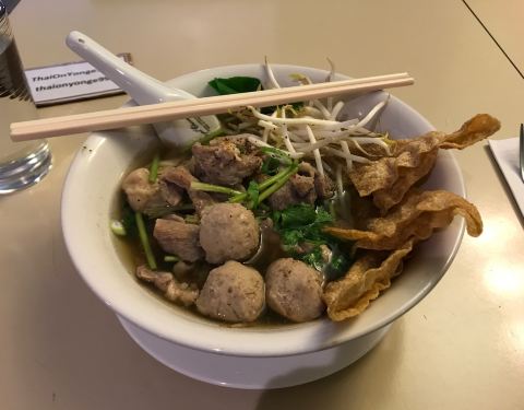 Hole in the wall Thai restaurant. Was super surprised by the large portion I got. The noodles were super delicious and the meat was soft and tender too! The broth was clear and tasty. polite staff