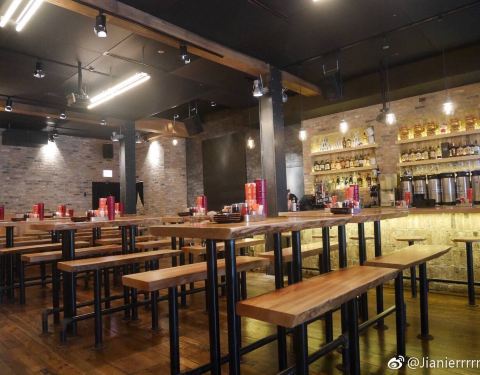 - 主要还是吃拉面,不过也有一些小食提供。砖墙和木条长桌的布置原始简洁