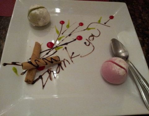 Great place - bento box and godzilla roll recommended!! They also made us this very thoughtful and sweet dessert!!