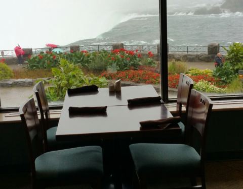 - 餐厅位置非常好,正在尼亚加拉大瀑布前面,坐在窗前的位置吃饭,窗外就是波涛汹涌的大瀑布,是何等惬意的事