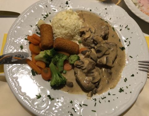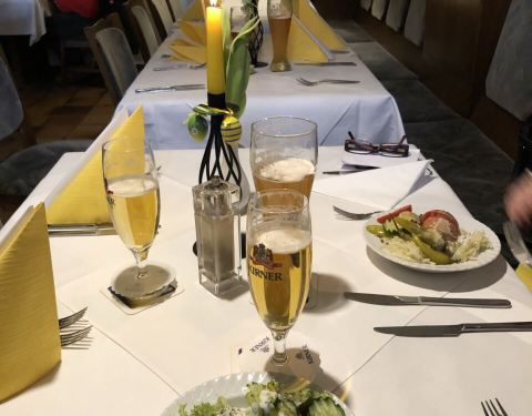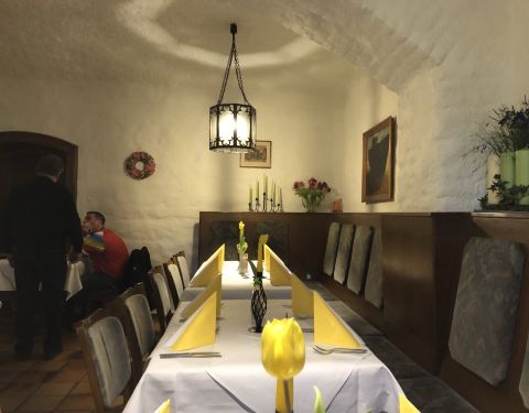 非常地道的德国餐厅,当地居民聚会和晚餐的地方,环境布置的可以,但是在地下一层,采光不是很好,不过都有蜡烛。服务员很热情,口味不错,价格也不贵,三个人吃饱喝足50-60欧。