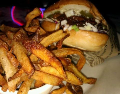 选择困难,最后还是让服务员推荐了一款酒,小哥人很不错,薯条搭配汉堡虽然不营养,但也十分好吃,喜欢这里