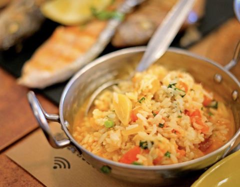 塞维利亚Duque餐厅,海鲜饭跟西班牙海鲜饭最大的区别可能就是海鲜汤泡饭,米难得这么软啊,流下了思乡的泪水,看翻译软件说是辣味鸡肉配面包,其实基本上连微微辣都算不上,旁边配的炸面包还挺好吃,感觉像油条?...塞维利亚Duque餐厅,海鲜饭跟西班牙海鲜饭最大的区别可能就是海鲜汤泡饭,米难得这么软啊,流下了思乡的泪水,看翻译软件说是辣味鸡肉配面包,其实基本上连微微辣都算不上,旁边配的炸面包还挺好吃,感觉像油条??然后里斯本烤鱼为什么不去鳞啊,好像老外讲究原汁原味?而且他们不吃皮,忍了,配的烤蔬菜还行吧。