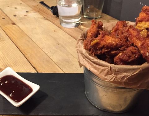 Gallo rojo: crujientes piezas de pollo al estilo KFC // Red Rooster: KFC style crispy pieces of chicken.