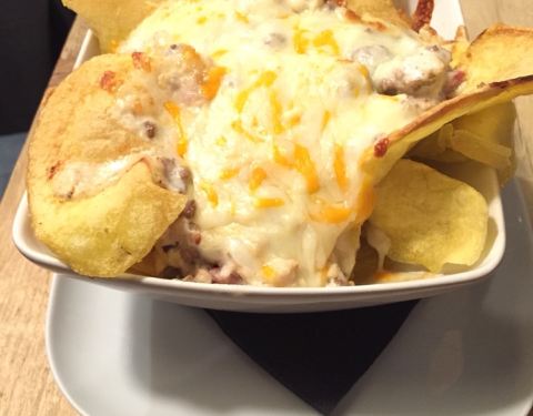 Patatas de la Tata: patatas con bechamel, carne picada, jamón y queso fundido // "Tata" Potatoes: potatoes with white sauce, minced meat, ham and cheese.