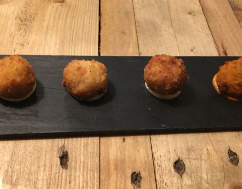 Croquetas de jamón y croquetas de setas // Ham croquettes and mushroom croquettes.
