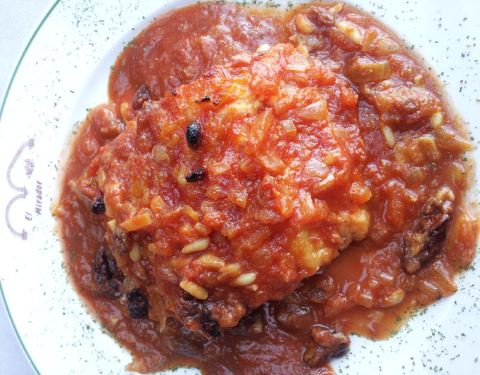 Bacalao a la miel con piñones pasas y almendras...
