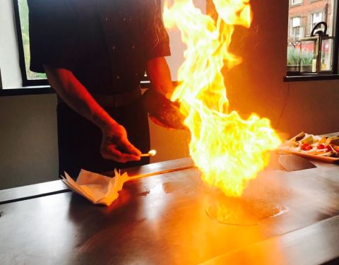 餐厅意在分享正宗的铁板烧烹饪文化,食客将坐在围绕着铁板烧的大桌子边,亲眼观看厨师用新鲜的食材烹饪出美味的菜肴。并且可以和厨师互动,讨论你想如何烹饪菜品。再搭配精美的葡萄酒或是啤酒,相信这会是一次愉快的用餐体验。