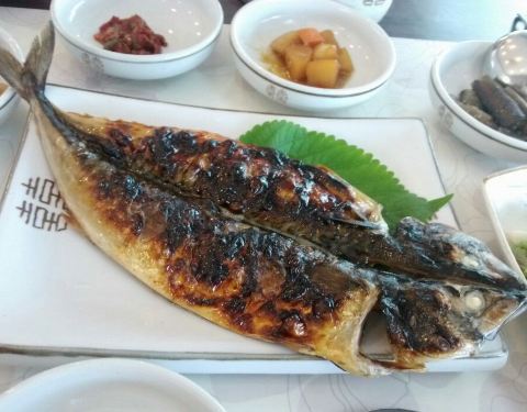 主菜为烤黄太鱼,黄太鱼是韩国江原道的特产,这家与别家的不同之处在于不仅有烤的,还有煮汤的,很鲜美。
