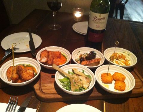 Try the cicchetti x 3 types for just £6.00 it's the same idea as Tapas but comes from Italian Osteria bar/restaurants where they serve small bites. Deep fried chicken in Romesco sauce fantastic!