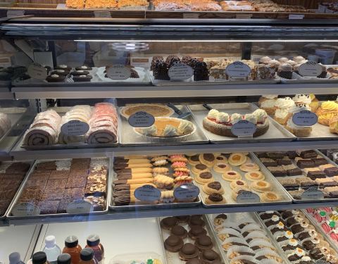 一大早的出门赶路,开车到了这个小镇。 需要补充点能量,休息休息。原本想找家星巴克,买杯咖啡的,但是小镇上好像没看见有门店。 所以就近选了这家店,后面看网上评价还是不错,感觉自己直觉蛮准的。 算是一家面包店也算是西餐店。因为正餐时间是可以吃饭的哟。 典型的美式装修,颜色很深,光线比较昏暗。 店内的面包款式还蛮多的呢,只是普遍不太精致,个头大看起来料也足,价格还算合理。 只是比不得欧洲那些面包房的款式吸引人。 美国的甜点都是巨甜巨多糖的呀,真的是吃完一整个,感觉人都被糖给密封了一样。 这家的面包味道还行,看到喜欢的可以试试看。 咖啡比较普通,我觉得并不推荐。