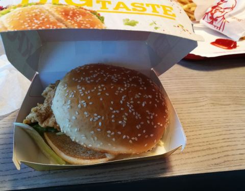 这里人气很旺,点餐需要排一小会儿的队,不过座位没有问题。感觉这里的整洁度不及国内的肯德基餐馆