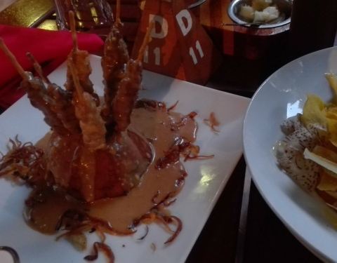 空气中弥漫着肉的香气,鳄鱼肉和一些内脏很特别, 肋排和鸡翅的味道相当不错,比较符合中国人的口味。