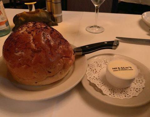 全球最知名的连锁牛扒西餐厅!Morton's对于喜爱牛扒的人肯定都不陌生,因为这是一个全球都有很多分店的一个美国著名扒房。而香港的分店就位于著名的喜来登酒店4楼,这个地理位置非常优越,靠近维多利亚港、星光大...全球最知名的连锁牛扒西餐厅!Morton's对于喜爱牛扒的人肯定都不陌生,因为这是一个全球都有很多分店的一个美国著名扒房。而香港的分店就位于著名的喜来登酒店4楼,这个地理位置非常优越,靠近维多利亚港、星光大道、香港太空馆等景点,而且距离尖沙咀和尖东两个地铁站仅有5分钟的路程距离。香港喜来登酒店已经开业了40多年,已经是一间很古董的酒店,所以餐厅的装修也偏向于复古风一些,整个餐厅的灯光也是偏暗偏柔和的,餐厅的靠窗位置可以观赏到维港景色,所以如果喜欢看夜景的客人,预约座位的时候可以要求窗边座位。餐厅的较里面,还有一个酒吧台,不吃牛扒的客人,也可以在黄昏过来品尝一下美酒,观赏一下海景。餐牌都是全英的,但是里面有会中文的服务员,可以叫服务员做介绍,而且服务员还会拿出一对生牛肉,逐一给你介绍牛扒的种类和品质,非常专业。餐牌主要分了头盘、汤类、主食和配菜等等,主菜的价格都是600元起的,但是一份主菜还是挺大的,可以分享来吃,人均大约800-1000港币左右。另外还有一个饮料菜单,由于我和朋友都不喝酒,所以我点了一瓶矿泉水,他就点了一瓶气泡水,这两瓶水都不便宜,一瓶就80元了。点好餐以后,餐厅就会上餐包,这是我在扒房吃过最大的餐包,比我的脸还要大,如果吃完这个包,真的不用吃其它东西了,我和我朋友吃了一半都没有就停了,个人觉得餐包做这个大份实在太浪费了,希望下次能有小一点的。前菜我们点了一个蒜蓉烤生蚝,生蚝很新鲜,而且这里的蒜蓉也不会像其它餐厅那样,把生蚝的味道和口感抢去了,两者味道和平衡。汤我们点了一个龙虾汤,餐厅很贴心的帮我们把一份龙虾汤分成两小份了,虽然说是分了小份的,但一个人的份量还是很充足的,龙虾汤有点微苦,但很浓郁,很鲜味。主菜我们点了一个混合烤类的,里面有牛扒、带子和大虾,这样一道菜就能尝到三款不同食物了。牛扒肉质很好,五成熟还能看到粉红色的肉质。带子很大一颗,被培根包裹着,一口咬入口中非常满足。大虾也还算新鲜,但没有太大亮点。最后还点了一个芝士薯条做配菜,以为就小小一盘,没想到超级大一桶,完全吃不完,但味道确实很不错,比麦当劳的好吃多了。这家餐厅很适合庆祝特别节日,餐厅会再菜单纸上写上你的名字,就像你的专属菜单一样,然后还会送一个甜品作为小惊喜,最后还会拍一张照片,放在卡片里面送给客人。所以如果要在香港庆祝特别节日,一定推荐Morton's。
