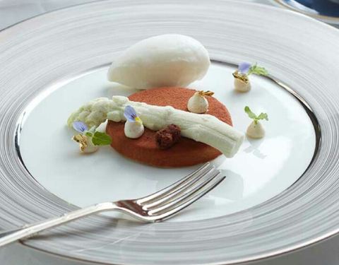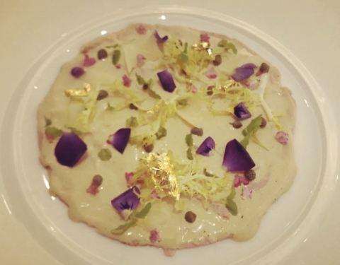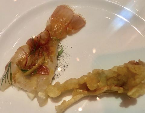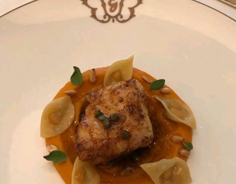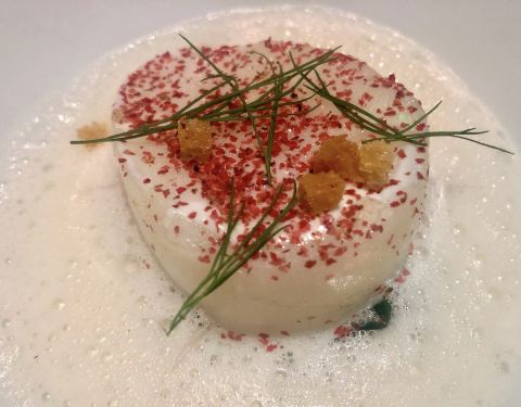 香煎日本甘鲷鱼伴各式甘笋配红花泡沫汁