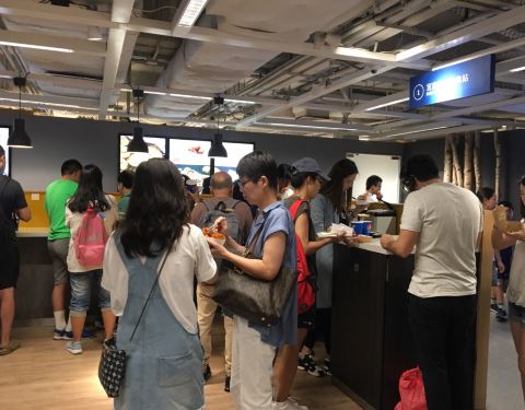 - 在香港的宜家,可没这么好的条件,这里宜家的餐厅,全都只能站着,能有个小桌放放饮料就不错了