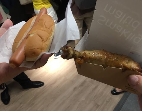 宜家的美食廊便宜又好吃惹,烤雞雖然外皮有點乾但里面還是有汁的,熱狗就不用說了必點,然後猛然發現...