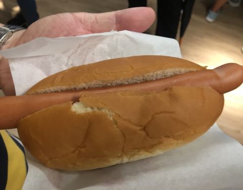 香港宜家内的餐厅可不像大陆的宜家餐厅那样,是中老年人的相亲之角,一坐就一整天聊个不停的。香港宜家的餐厅是没有座位的,全部都只能站着吃。站着吃的位置就在宜家卖场的入口,同时也是出口,所以来来往往的人会比较多,买好饮料要很小心,别泼到别人的身上了。环境不咋的,不过倒是挺便宜,热狗+汽水10蚊。10蚊,这个价格在香港连一串麻辣烫都吃不到吧。
