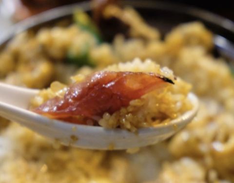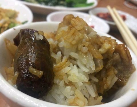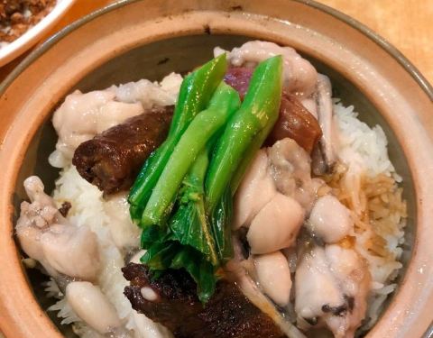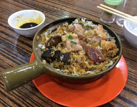 因为煲仔饭开始卖的时间比较晚,旧的店铺又满员的关系,好不容易才吃到这家店~看见和我们拼桌的人点了一大堆,馋的不行⋯无奈肚子有限又过敏,俩人只点了一个腊味排骨煲仔饭和一杯菊花蜜,不过正宗炭炉煲仔淋特...因为煲仔饭开始卖的时间比较晚,旧的店铺又满员的关系,好不容易才吃到这家店~看见和我们拼桌的人点了一大堆,馋的不行⋯无奈肚子有限又过敏,俩人只点了一个腊味排骨煲仔饭和一杯菊花蜜,不过正宗炭炉煲仔淋特质酱油,再配煲沿的锅巴味道的确不错,多凑几个人再来吃一遭