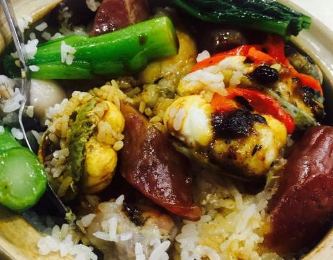 煲仔饭深受港人喜欢的原因,除了其本身是提升南方潮湿冬日幸福指数的利器,再有就是不论四季中哪一个节点,但凡看着酱油淋在热气嘭嘭的煲沿吱吱作响,蔬菜和肉块的香味四溢,嚼上一口煲底高温作用下形成的饭焦,就定会感受到从内心底升起的满足。