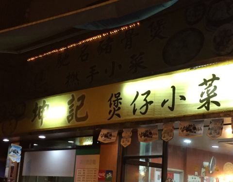 路过了坤记很多次,但是每次都被店外排队的人给吓退了。心里面也暗暗记下了这家店,一定要来吃一次。于是这一天在18点刚刚开始营业的时候就来了,顺利的进到里面坐下来。点了一份腊味排骨饭,90蚊。店里的人不多...路过了坤记很多次,但是每次都被店外排队的人给吓退了。心里面也暗暗记下了这家店,一定要来吃一次。于是这一天在18点刚刚开始营业的时候就来了,顺利的进到里面坐下来。点了一份腊味排骨饭,90蚊。店里的人不多,但是煲仔饭的上桌速度还是很慢,因为每一份煲仔饭都是现点现做,等于说你要坐在那里等待着大米慢慢的煨成米饭端上桌。炉火上一共可以放十只煲仔砂锅,就看师傅不停的忙着。一锅煲仔饭端上桌看着是好大一份,但其实不太吃锅边上的锅巴的话,一个人还是很容易吃完的。淋上那一碗酱油,豉香加上锅巴香,还有腊味和排骨的肉香,味道非常丰富的一锅饭。