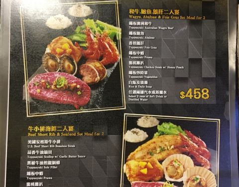 新世纪广场里大食代的亲民价格铁板烧,两人套餐288,里面有肉眼扒、海鲜,包括了餐汤、饭和蔬菜,如果额外+12块钱,就还有两罐汽水,其实分量还是很多的。安格斯肉眼扒加上蒜粒炒一炒,五成熟即可,简单用盐调味...
