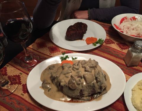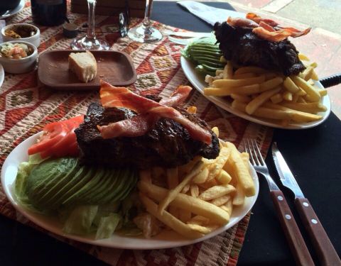 La mejor parrillada de Pucon. Hay varios platos que pueden ser para dos personas como el bife a la maga