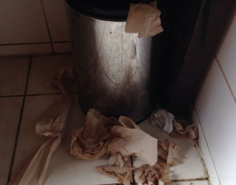 Estimados usuarios, la idea de esto es que los papeles queden adentro del papelero y no afuera. No basta con pagar una cuenta para que pequeños gestos cambien el mundo... #Olivares2018