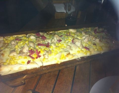 La pizza montaña es excelente !!! Crema,pollo,choclo y tocino!