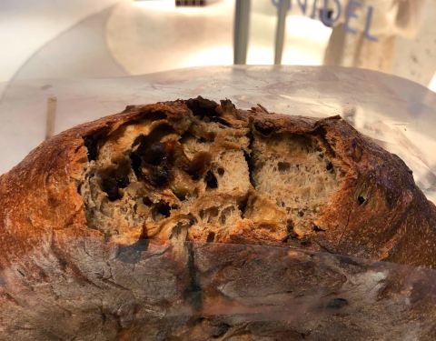 味道的确没话说,面包本身味道很香,面包上的粉是自家培制的天然酵母,里面不含任何添加剂,全都用天然材料,个头超级大(够3-4个人吃)而且超有弹性和嚼劲,好吃。