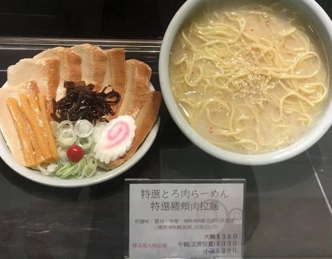 ...,但这家的拉面名字仿佛特别简洁,盐味拉面、酱油沾面……还好有模型有图片,让我知道里面还是有肉的