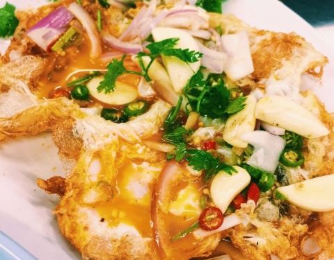 银瓶乍破水浆迸,铁骑突出刀枪明。 忘了在哪个食评上看到过用这句诗来描述食物,当时心向往之:那得多么好吃啊!!这次在Soei,第一口大虾沙拉吃到嘴里的时候,脑子里先是空白了几秒,然后这句诗牢牢占据了整个脑海。直到回来两周以后的今天,再次回想Soei的美味,第一反应还是一样。 这家餐厅,是在看完mark wiens的曼谷14天食评后最想去的一家——事实证明吃货的直觉是对的—_—\\\ 当然,因为特别突出的口味,建议以下人群重点关注去:1-能吃辣爱吃辣的,尤其对泰式的辣味(不是甜辣)接受度较好的;2-行程自由度较高深度游、能执着的为了美食花费时间找地方的。这家店地理位置不是旅行者聚集地区,全程没有看到一个中国人的影子出没。我们当时是打了出租车,但是司机只把我们带到了附近,还是靠了google map+一路问人才找到的。当我们在外面的街道上问路时,一位泰国美女大妈还反复的问我们,你确定你们要到那里去吃吗?是很local的东西、很辣的哦? 哎呀闲话太多了,赶紧上正文,按照上菜的顺序: - 煎蛋沙拉:哦漏这玩意儿和平时所知道的煎蛋or沙拉完全不是一个概念……一个很大的溏心煎蛋,端上来的时候蛋上覆盖小绿辣椒碎(应该是吧,反正很辣)、洋葱、花生碎(?)、不知名的酱等作料。用叉子挖一块,连同辅料一起放到嘴里……有蛋的香味,微咸酸,然后是层层的辣味随着咀嚼泛上来。开胃、开眼(第一次知道煎蛋还能吃这种口味的)。于是迅速的和老爸对视了一眼:来对了! - 咖喱软壳蟹:mark最推荐的菜,味道相对其他几道菜较为温和。软壳蟹的口感十分奇特:他有壳儿,但是吐不出来……一开始对于到底是嚼吧嚼吧咽下去还是嚼吧嚼吧吐出来很是犹豫了一番。后来想到吃货mark貌似是囫囵吞下去的,于是最终还是照搬了。咖喱不是很冲的那种。嗯……不好形容了,总之很值得一试啦 - 大虾沙拉:美女服务生着力推荐的。她说mark也很喜欢这道,只是没有放到vedio里面。事实证明这道菜是最符合文首那句诗的。端上来的时候是一大盘,仔细拨开看,里面有大虾(整只的,很大),洋葱、新鲜番茄碎、生蒜片、及其他完全叫不上名字来的香料酱汁。拿起大虾,摘掉头,虾身沾上调料,合着沙拉里其他的内容放进嘴里……wow,一种很冲的混合味道充斥满整个脑袋!辣、咸、麻(不是花椒那种麻)、说不出名字的汁水的香味,一时间感觉有无数种味道在嘴里绽放开来,但是每一种味道又和其他的味道巧妙的融合在一起,各自突出,但不突兀。那个时候的想法,一是,泰国