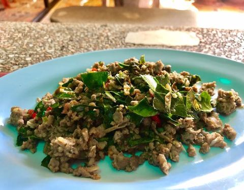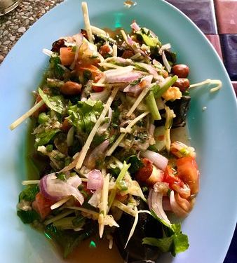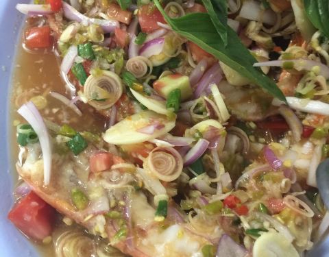 这是一家独特的餐厅,以前是沿着铁路线的,但现在已经隐藏在附近了。菜肴的味道一般都很浓-辛辣,酸味,草本。芥末辣沙拉生虾(kung wasabi)很辣。配大蒜和香料的炸虾很咸,但很适合搭配米饭。