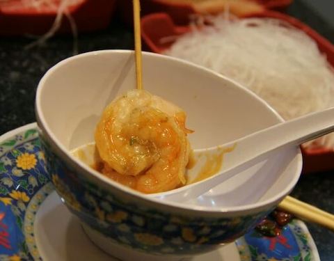 第一次在泰国吃火锅,和以前吃的火锅不一样。这种火锅锅底相当的清淡啊。价格略有点贵。选了两人套餐,有赠送一碟烤鸭。感觉烤鸭比火锅里的内容还好吃。当然虾丸还是很不错的,个头大。套餐内容吃完我们还觉得饿...