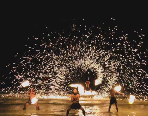 到象岛第二天,还是要去打卡一下网红中餐厅三,大部队tutu车从酒店过来300,中餐厅还在,只是名字换了,这家餐厅在中餐厅旁边,决定在这用餐,餐桌摆在沙滩上面,吃饭看日落和fire show.幸福感爆棚。菜的味道还可以,就是有一点点贵。