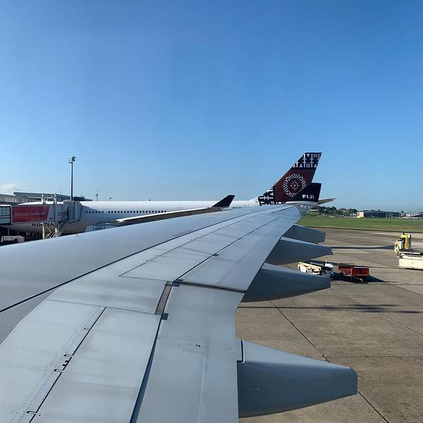 白天出发,白天抵达,此时北京时间是凌晨4点多...下飞机,一股热浪涌入心头楠迪机场非常 非常小,每到一批旅客,都有音乐迎接哦~ 感觉很有仪式感,一下就放松了,工作神马的已经抛之脑后~温馨提示:机场的安检很...