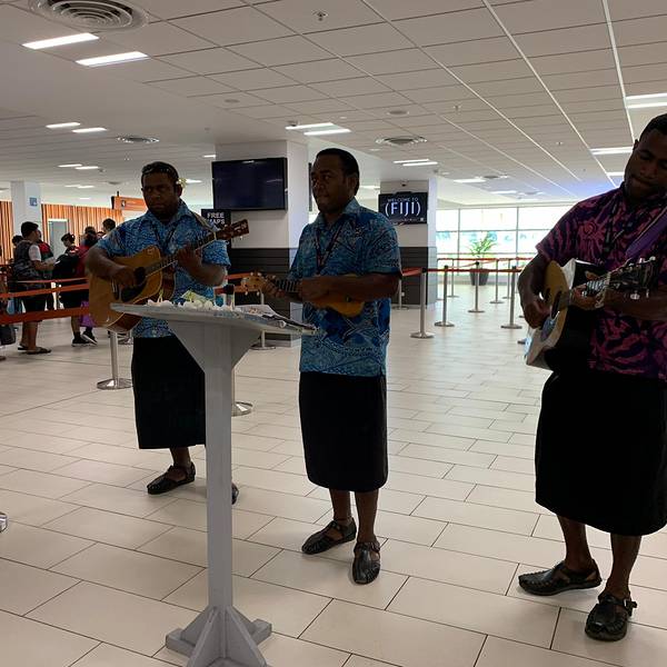 而餐厅吃饭是有税的,买单的时候是直接算在里面的哦~楠迪机场非常 非常小,每到一批旅客,都有音乐迎接哦