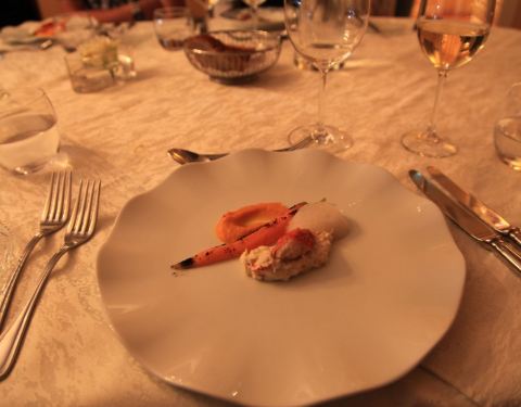 楼上的小餐厅相当于阁楼,适合十多人聚餐。虽然是传统法国风味菜系,显然还有挪威北部特点。我点的主菜是鱼,由厨师确定做法(catch the chef''s way)。其他人点的牛腰肉也很好。开胃菜是胡萝卜奶酪配烤帝王蟹。...