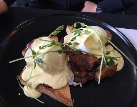Awesome coffee and eggs benedict