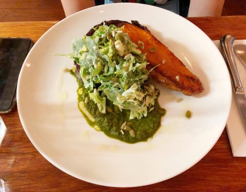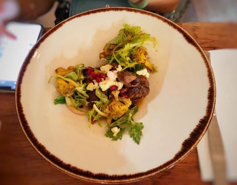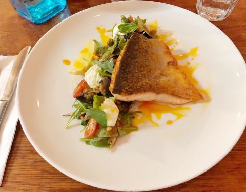 小镇不同于悉尼这样的大都市,天一黑,街上基本没人,商店黄昏就全关门。我们一路跟着地图走,街道两旁都是黑灯瞎火,做好了去麦当劳的准备…… 沿着街道一直走到尽头,看到了头上悬挂的招牌“Salt Dish”,竟然有灯光亮着,走近一看,哇塞,满座!还没进门就能感受到屋内热烈的气氛了。 餐馆店面原本就不大,三分之一划为开放式厨房,三分之一用于前台收银,只有三分之一是顾客用餐区。但是,整体布局井然有序,店内装潢很现代简约,餐桌摆放以及小蜡烛都十分温馨~ 菜单很简单,分为前菜和主食两部分,前菜都是色拉,主食基本都含有荤食,每部分都有5道供选择。按每人点单,一人一个前菜一份主食,再另点一杯喝的。 平时都是最后才说的,这家为了表示我对他的喜爱,提前总结,真的很好吃大大大的赞,我们连着两天晚上,都来这里觅食,几乎尝遍了所有菜色(本来也就没几样)。 老外的菜单有一点不太好,就是不懂得高度归纳总结,喜欢把所有材料一字排开,这给点评带来了些许小困扰,只能简略挑里面的主要食材来代替了。 从老姐的角度来说,这么一个二三线城市,牛肉能做到这个水准,太出乎人意料了。牛肉不论是肉质还是调味,都相当出色。要求是5分熟,烤的恰如其分,对于我这样很少吃全生食物的而言,虽然带着血丝,入口完全没有不适感,满口的香浓牛肉味[强] 我记得吃过两盘鱼,一盘是前菜(三文鱼),一盘是主食(什么鱼不知道)。前菜的三文鱼是烤的,埋在一堆草下面。我还是习惯草归草,鱼归鱼吃,不会互相交叉影响原本新鲜的食材美味。主食的那个鱼,我以为是烤的,因为盘底部的油很多。但是老姐告诉我,绝对是蒸的,油应该是后期淋上去。咬一口,的确肉质很清爽,没有油腻感。 前菜里面,我印象最深的是summer。不仅菜如其名,色彩斑斓充满夏日的勃勃生机,食材上也是丰富多样,从蔬菜瓜果到荤食肉类,还佐以软硬不同的坚果和左右不同的果酱。眼花缭乱的搭配融合出千变万化和层次感,一下就让我爱上 鱿鱼圈也是前菜,香酥松脆柔韧,嚼起来很带劲。鸡肉有点点新奥尔良的做法,很不错,旁边配的蔬菜没见过,老姐介绍是一种澳洲特产的蔬菜,叫啥忘了……还有土豆泥,汤底酸酸的,甚合我意。 salt dish就是很好吃不然,我们也不会接连两天都来享用~即使不在这个小镇上,开在大城市,相信也会受到欢迎。下次再来Geraldton我一定还会趁着月色,再来刷一顿哒~