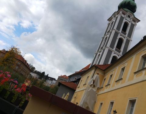 - 但是我们特别喜欢这一家爸爸的店,因为它就在彩绘塔的脚下,靠近Jost教堂,逛完克鲁姆洛夫城堡下...